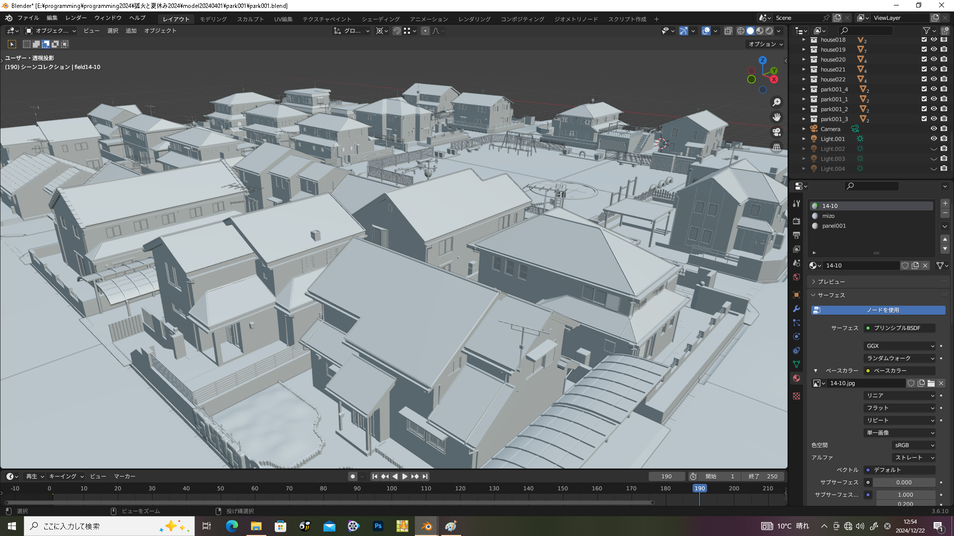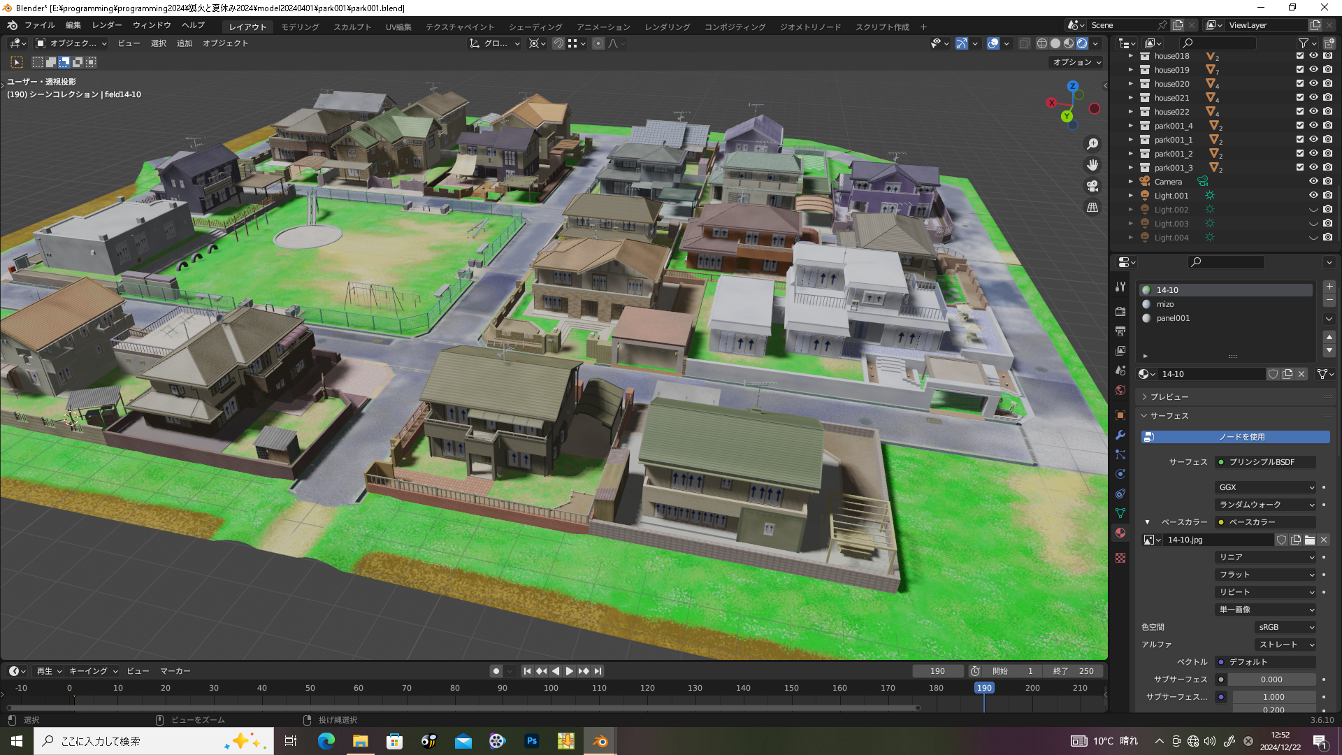 いやー・・モデリングの作業がこんなに大変だとは思いませんでした。家1個作るのにモデリングとテクスチャの作成を合わせて15時間くらい(期間にして1週間)程度はかかるので月に仕上げられるモデルはめっちゃ頑張っても4つが限界です。今回の住宅街には家が22個あるのでやっぱり半年かかってしまいましたね・・。まあ、来年以降は草木や電柱などモデルスタンプツールでコピーを配置するだけのフィールドが沢山あるので進捗は大分進むとは予想しています。