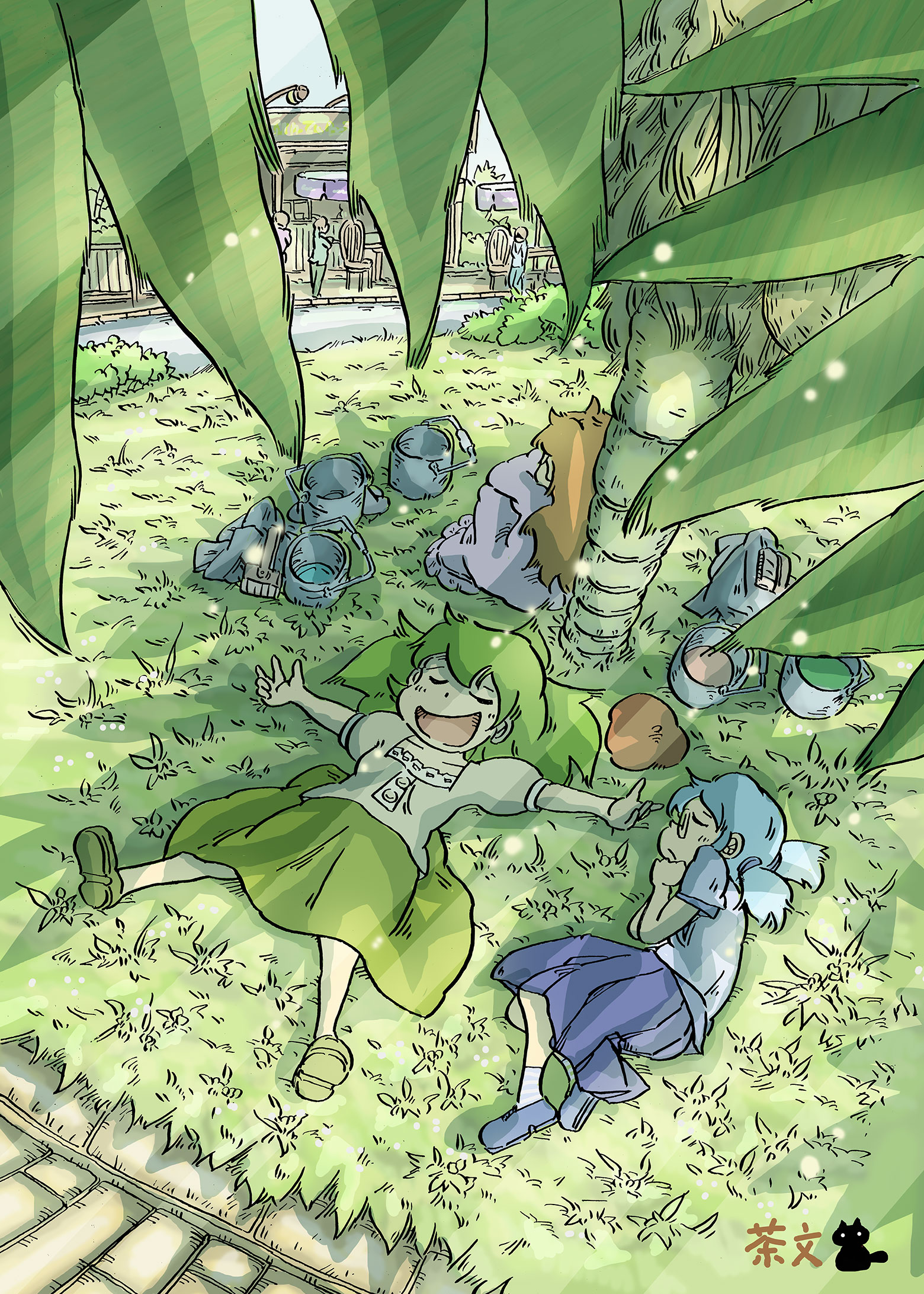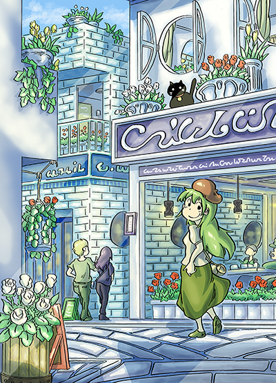 自分流の背景の描き方の方向性がだいぶ見えてきました。枚数を重ねることでもっと技術はレベルアップできるはず。頑張ろう。ペン画:1時間30分、塗り:8時間40分でした。 |